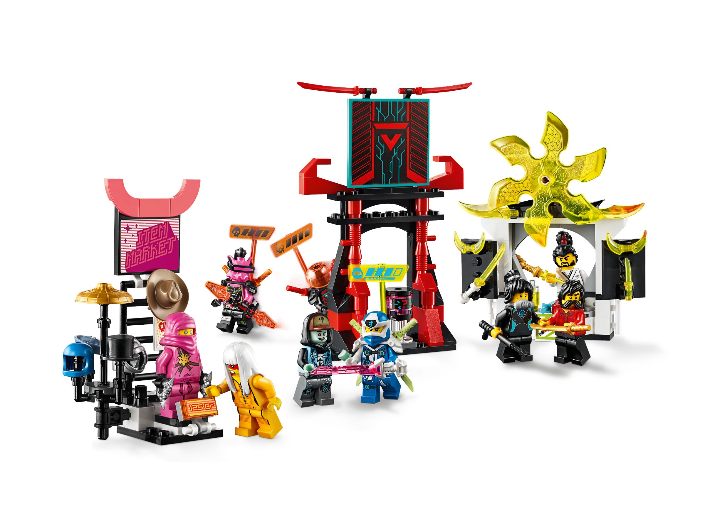 Das LEGO Set Marktplatz mit der LEGO-Nummer 71708 Gamer’s Market gehört zur Themenreihe LEGO NINJAGO. Altersempfehlung: 7+ Jahre. Dieser LEGO Baukasten ist 2020 erschienen und ist seit Ende Juli 2021 offiziell aus dem LEGO-Programm (EOL = End of Life). Das Set enthält 9 Minifiguren. Das Modell besteht aus 218 Teilen. Die Bauzeit beträgt weniger als eine Stunde. Die Teile des Sets ohne Anleitung und Box wiegen ca. 175 Gramm. Die LEGO-Box wiegt insgesamt ca. 332 Gramm.